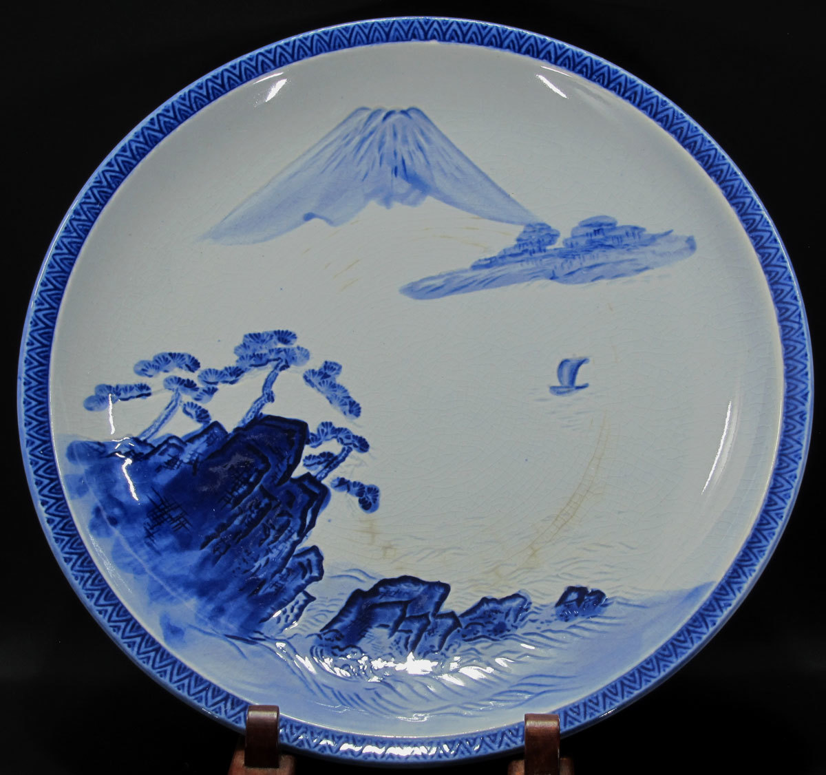 - 有田焼 中皿 (萬光)印有り 山水図 31.5㎝