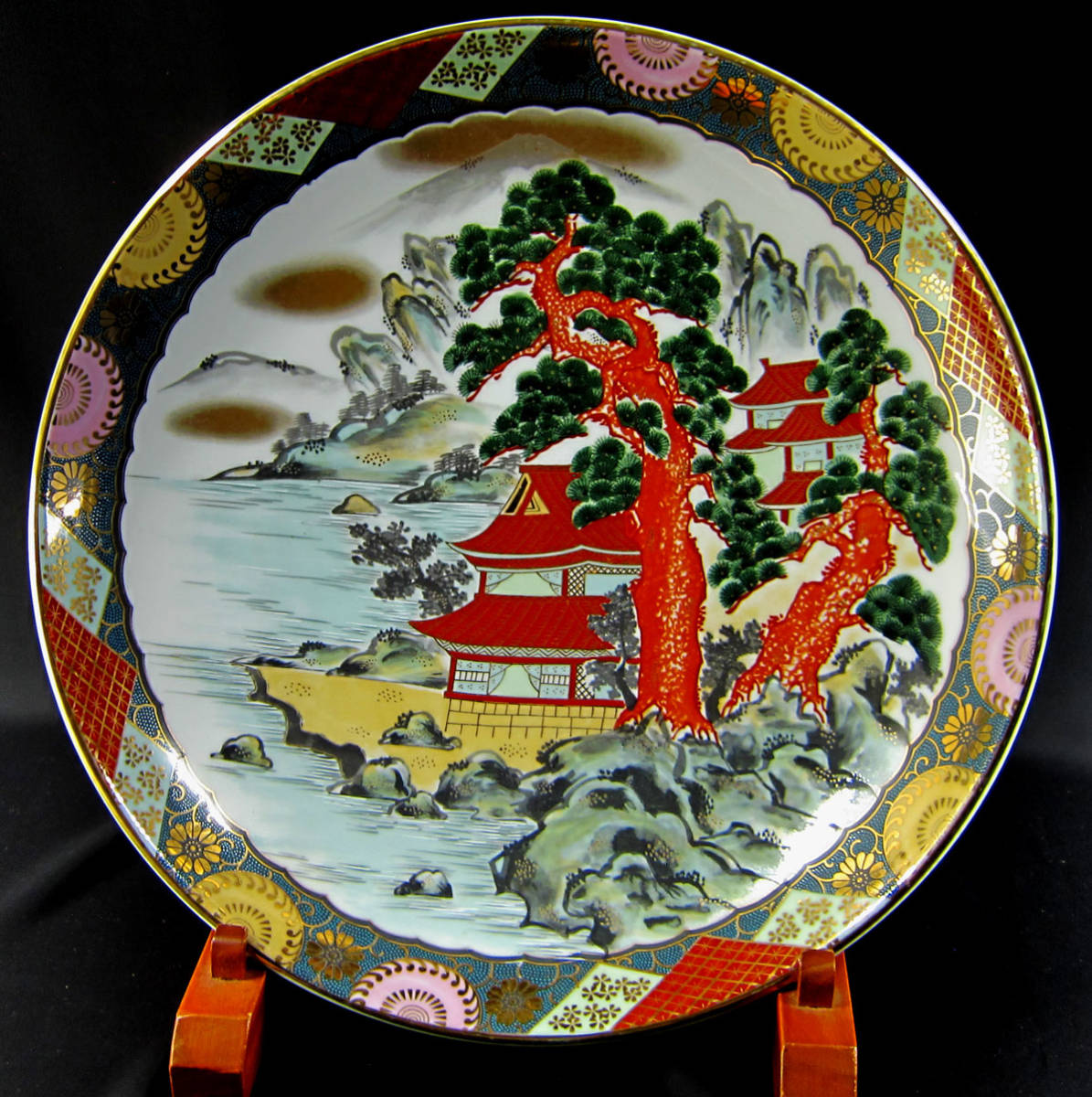 - 新九谷 風景画 大皿 高8×径39.5cm