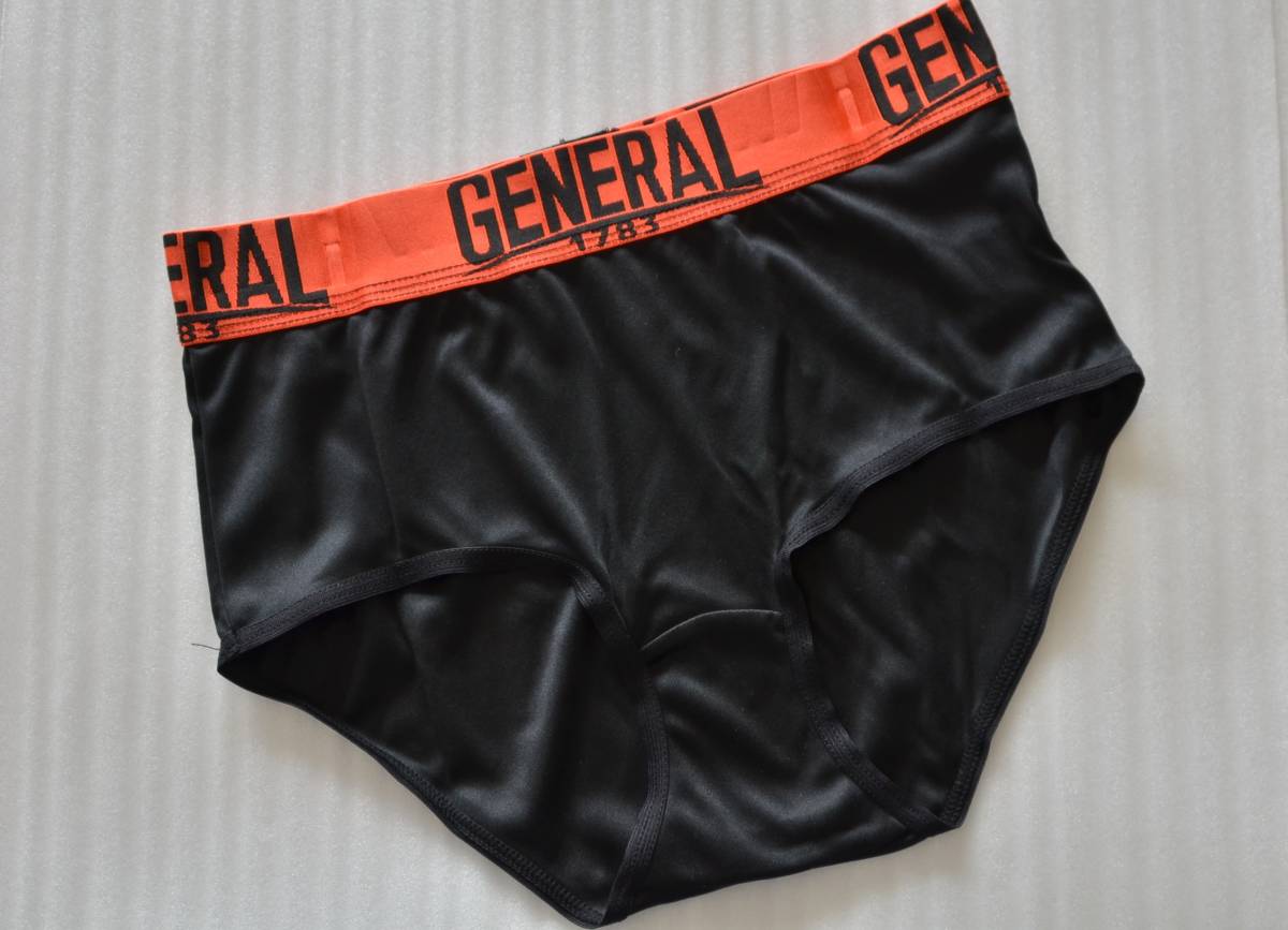 - 『送料無料』 ★大寸★GENERAL★ツルツル光沢★スタンダードショーツ ★無地 黒×オレンジ★ L