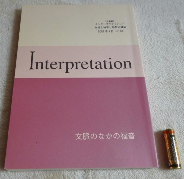 - 日本版 インタープリテイション 2002年4月 №64 文脈のなかの福音 ATD・NTD聖書註解刊行会 Interpretation