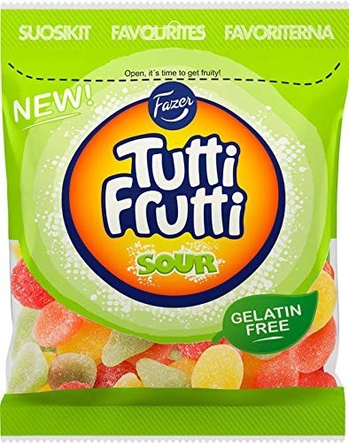 - Fazer Tutti Fruttiトゥッティ フルッティ サワー ラズベリー レモン 洋梨味 グミ 180g*1袋 グルテンフリー フィンランドのお菓子です