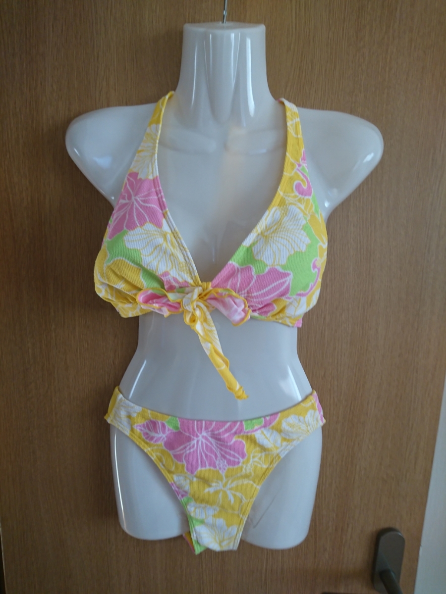 - ☆ハイビスカス柄のビキニ2点セット☆黄色×ピンク×黄緑☆サイズ11L☆