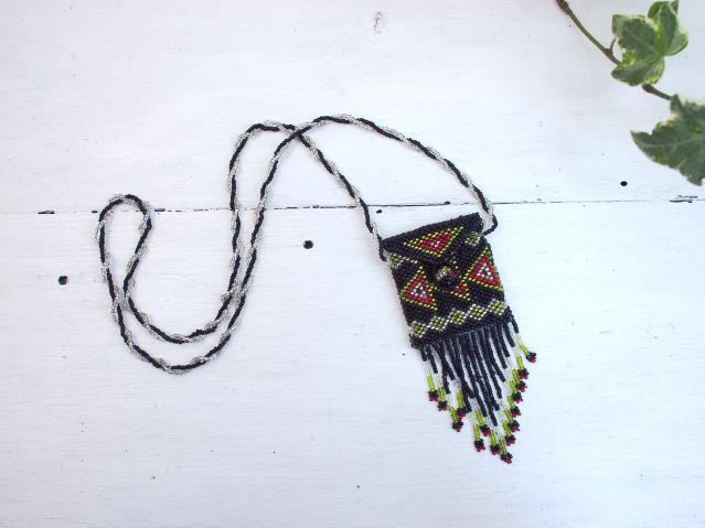 - バリ島面白雑貨*ビーズのポーチネックレス*クロ:D☆お守り・匂い袋などに