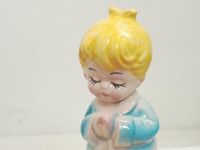- ビンテージ雑貨*お祈りする愛らしい子供陶器置物*B☆インテリアディスプレイ癒し