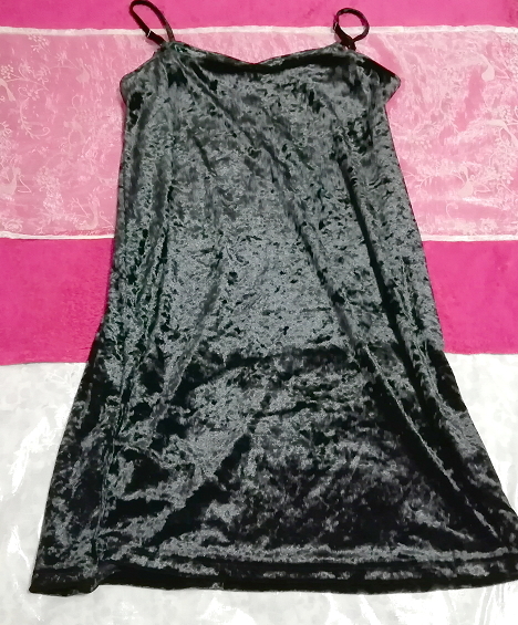 - 黒ブラックベロアネグリジェキャミソールワンピース Black velour negligee camisole dress
