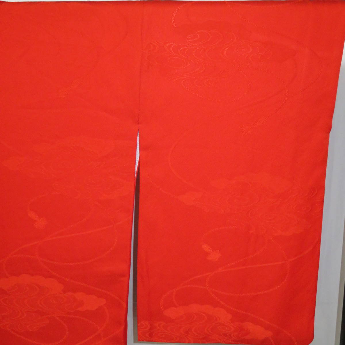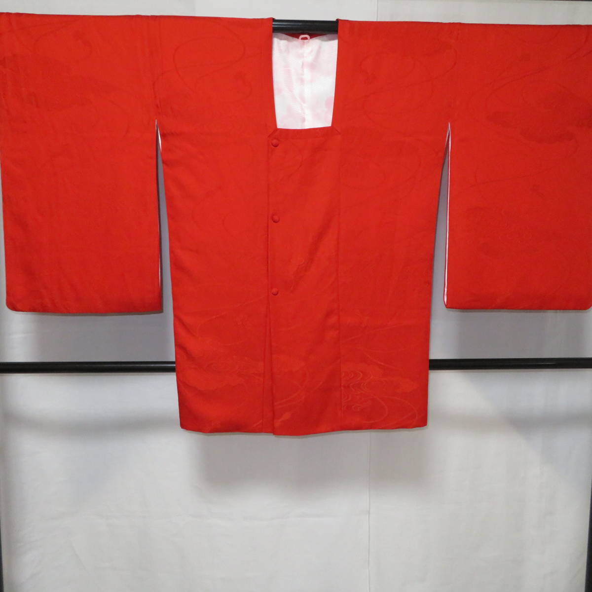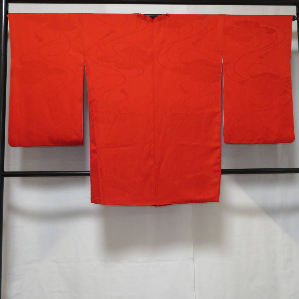 - 【桐徳】道行コート☆送料無料☆未使用品*美品*39セ-ル{正絹*袷仕立*道行コート}*丈89-裄67*黄み赤色地*観世水と紐.地紋*№3313
