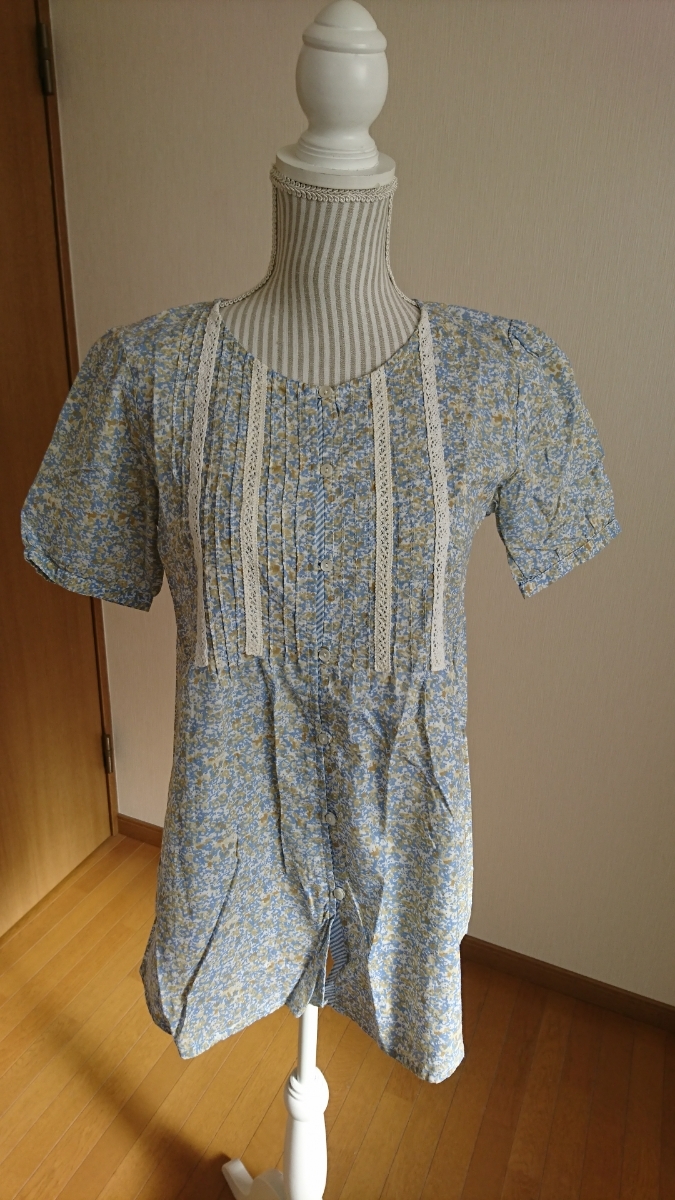 - ☆MAMAIKUKO de paris☆ママイクコ☆水色系総柄☆半袖チュニック☆38☆