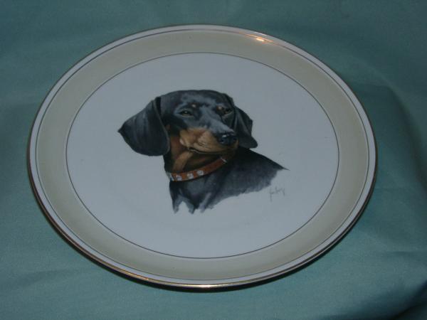 - ■20世紀後半 ミュヘン窯 手彩色金彩犬の絵飾り皿■■゜