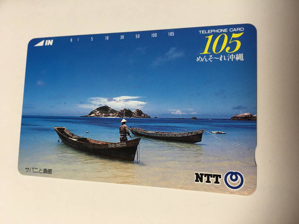 - ★未使用 めんそーれ 沖縄 サバニと漁師 テレカ テレホンカード 105度数 1050円分 NTT ミニレター