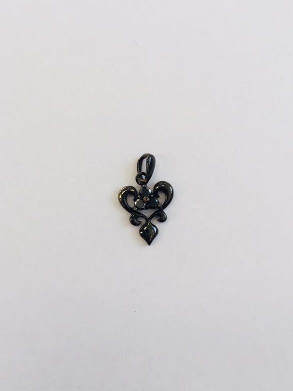 > 【美品】超レア♪ 黒エナメル k18 ブラック ダイヤ チャーム ペンダント トップ ヘッド ロマンチック YG ソリッドゴールド