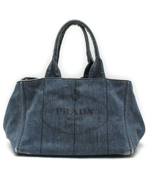 - PRADA プラダ ◇ インディゴ デニム 素材 カナパ ロゴ ハンド トート バッグ かばん