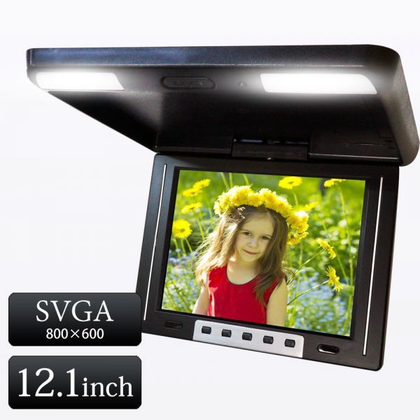 - LEDルーム 首ふり機能 12.1インチ フリップダウンモニター ブラック リモコン 解像度:800(H)xRGBx600(W) 赤外線信号 手動電源/オート電源