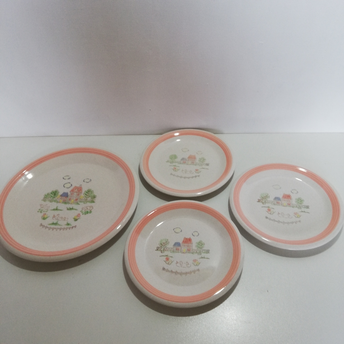 - レトロ食器 メルヘンファーム ピンクライン プレート 4枚セット [ケーキ プレート デザートプレート 日本製]