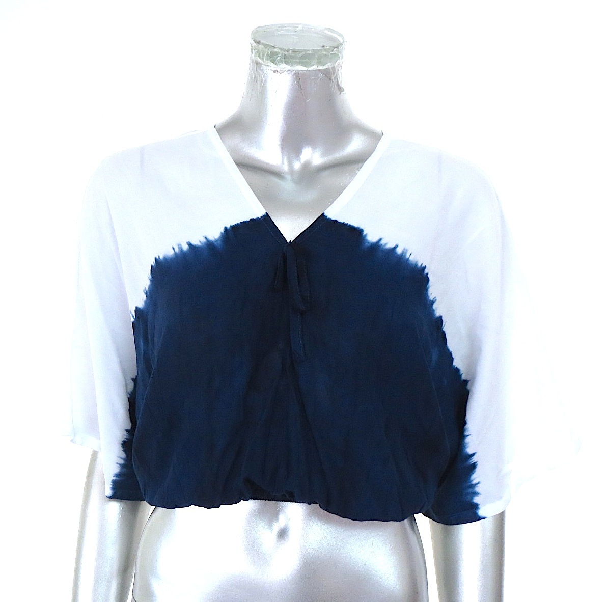 - 二点落札で送料無料! L048 LA BOUTIQUE 半袖 カットソー レディース S~M相当 トップス ブラウス 白 紺 ネイビー ホワイト