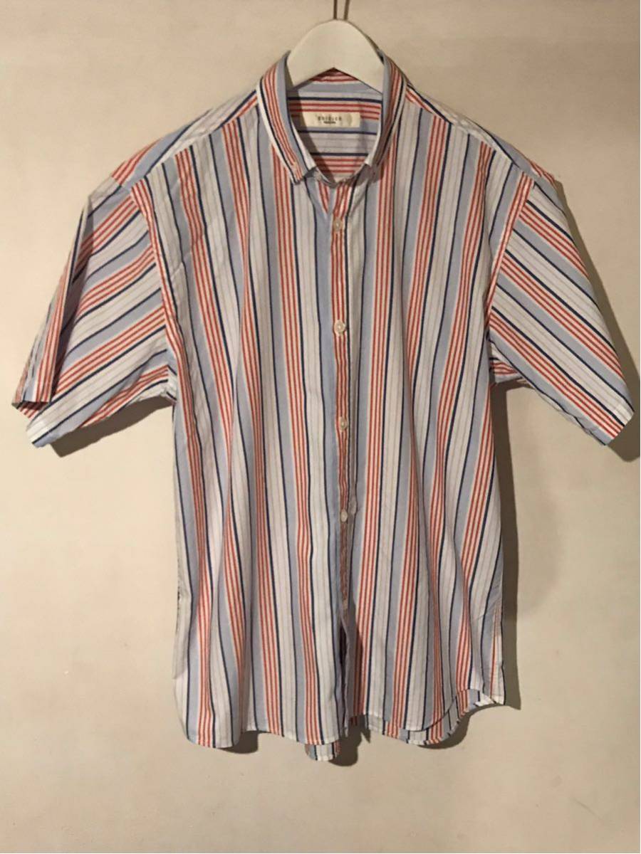 - ★エディフィス EDIFICE 半袖 ボタンダウン シャツ M マルチストライプ