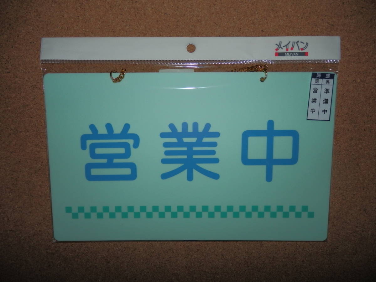 - ①保管品新品★メイバン 「営業中&準備中」 両面プレート ライトグリーン