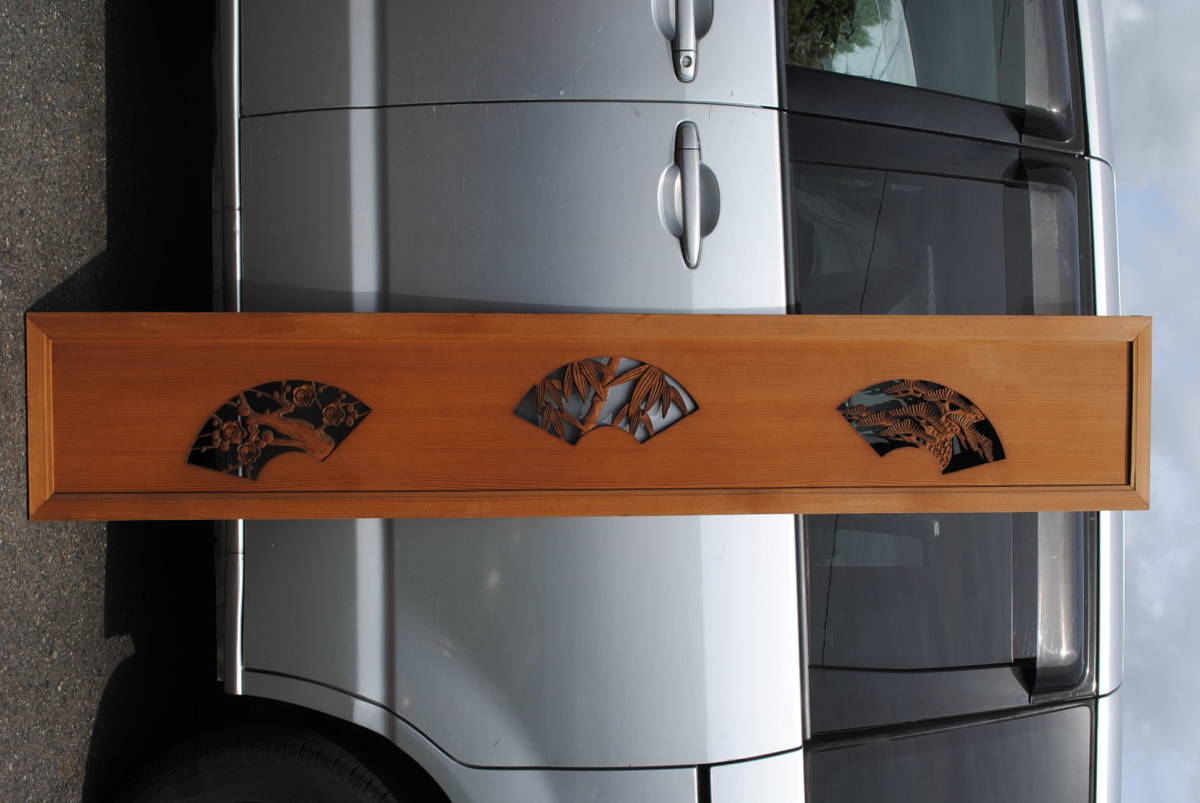- 北4 1枚 扇形枠 手彫り 松竹梅 木製 欄間 1820x324x30ミリ