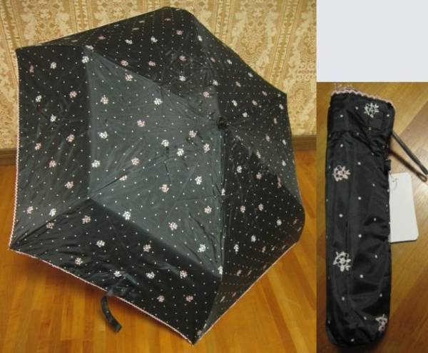 > *送料無料*新品*黒*小花*晴雨兼用*3段折りたたみ傘*遮光率99%以上*安全ろくろ*軽量*