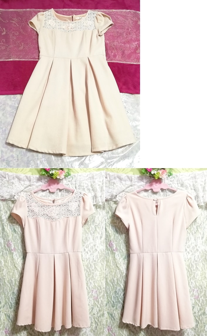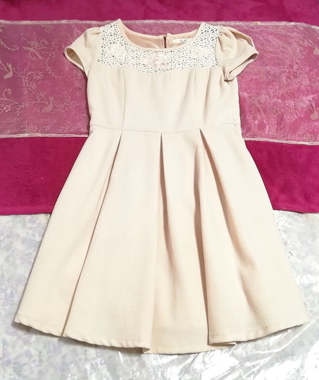 - ベージュピンク花柄ニットネグリジェワンピース Beige pink knit negligee floral pattern dress