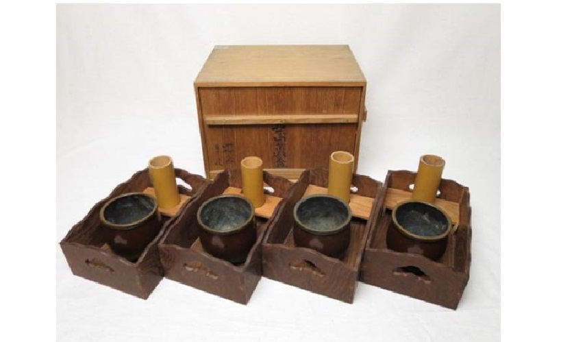 - 煙草盆 銅火入れ4客セット 木箱レトロ
