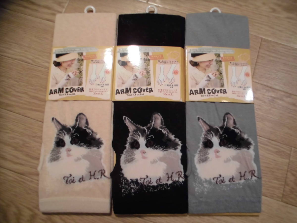 - 即決☆新品☆3色セットで!! 可愛い(^_-)-☆アームカバー レディース UV ネコ柄 ペルシャ猫 黒 ベージュ グレー