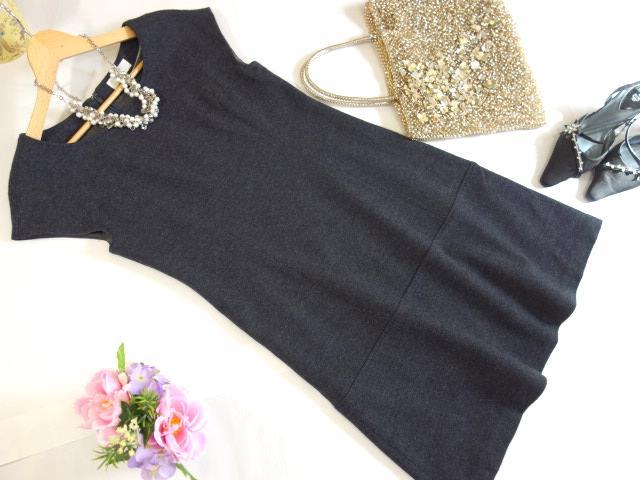 - ルスーク LE SOUK ★ウールマーク付き Aラインワンピース★サイズ36★ダークグレー色★毛100%