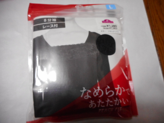 - ☆新品 8分袖シャツ(レース付) L(黒)保温 ☆