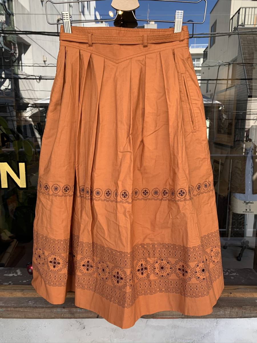 > ★Carlton Age★カールトンエージ★フレアー★ギャザー★ひざ丈★スカート★レディース★サイズ9(M相当)★ライトブラウン★コットン★