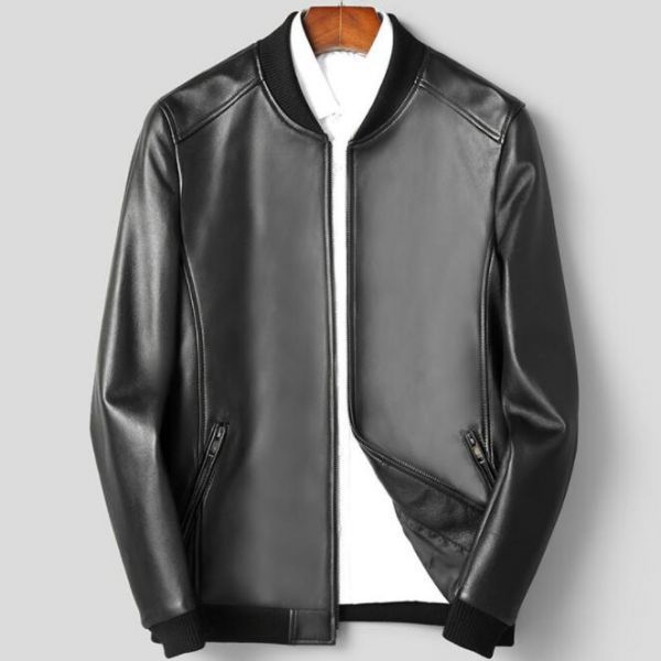 - SALE! 本革 ジャケット メンズ スタジャン スタジアム ジャンパー シンプル カジュアル リアルレザー 男性 ラム皮 ハーフ 通勤 黒 3XL
