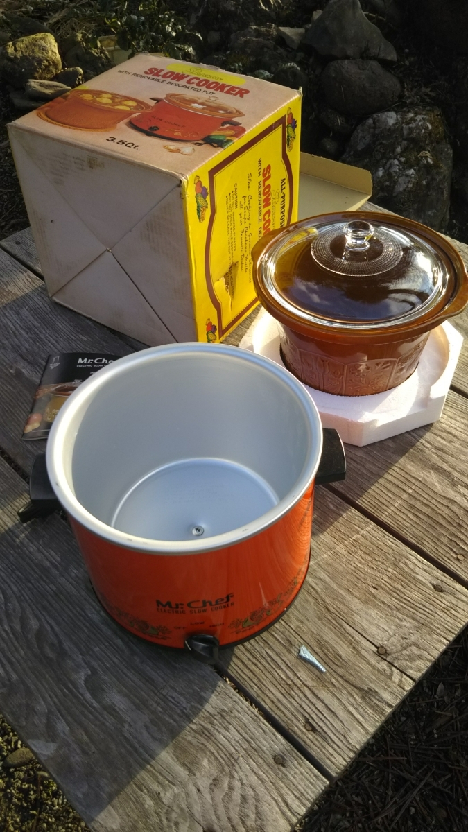 - お花柄の昭和レトロ なsloxcooker Mr.Chef3.5㍑ 鍋部は分離可動式 デットストック 美品 日本製 クッカーセット
