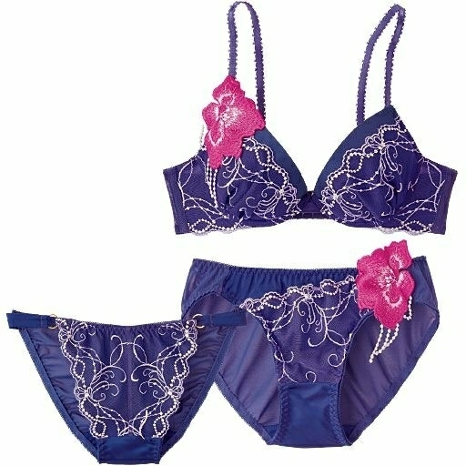 > ★国内匿配★新品 お洒落 高機能 ブラF70 ショーツM×2 レース 刺繍 ワイヤー サイドボーン パッド パープル ブルー 高品質イマージュ
