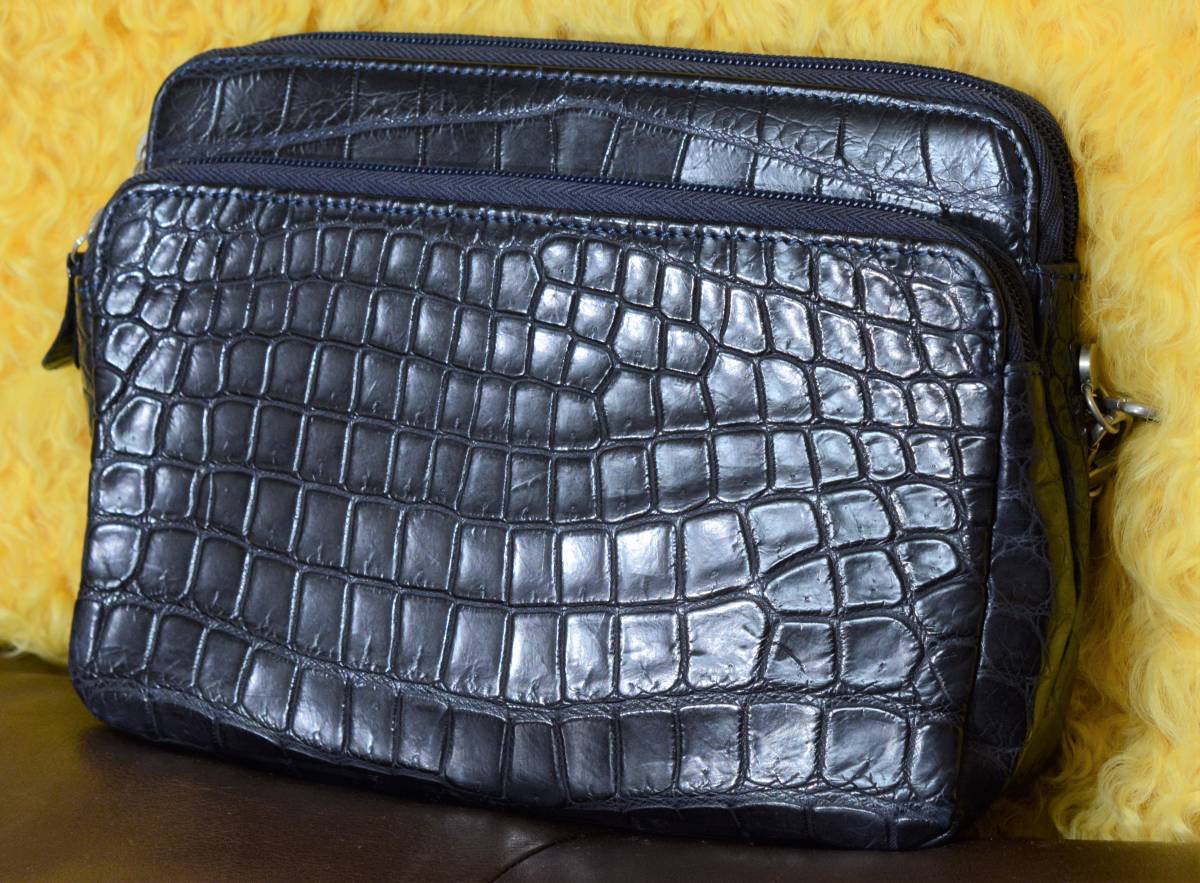 - 極上 本物 ストラップ取り外し可能 ワニ革 クロコダイル クロコ ハンドバッグ 紺 ネイビー マットクロコダイル セカンド ポーチ