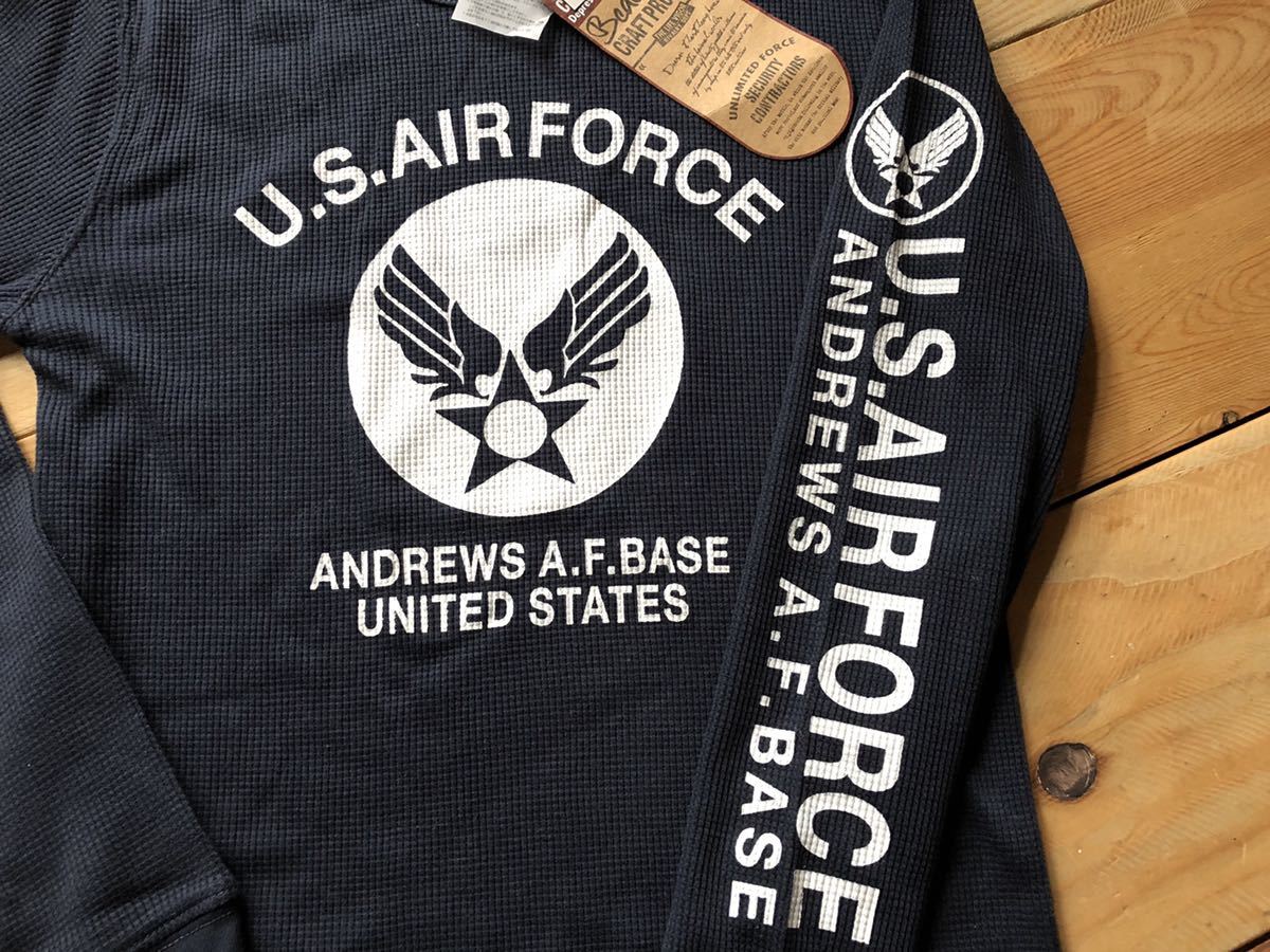 - 秋物 ワッフル地 ロンT アーミーステンシル USエアフォース 米軍 空軍 ミリタリー A.F.B ネイビー 紺 ワーク USAF ガレージ タイトフィット