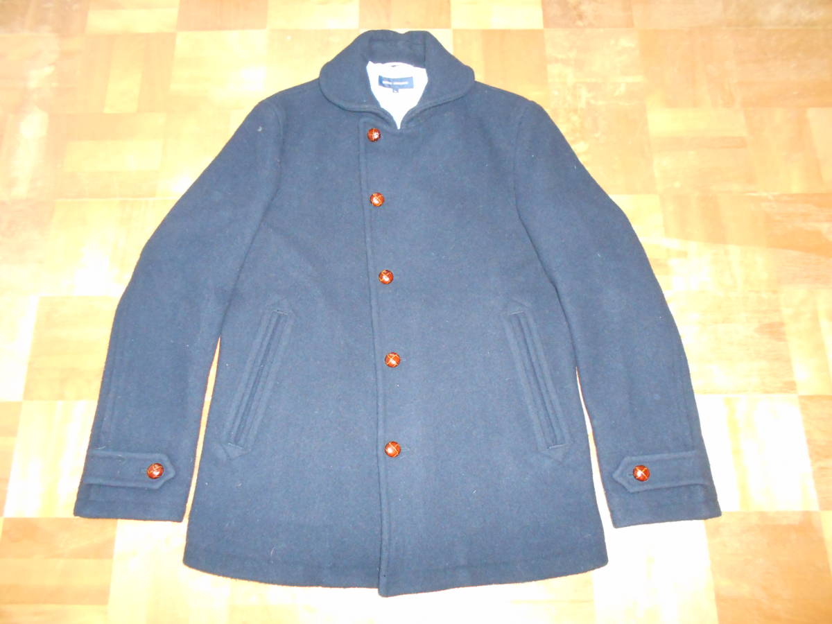 > ★URBAN RESEARCH メルトンウールラウンドカラー デザインコート★紺sizeL★