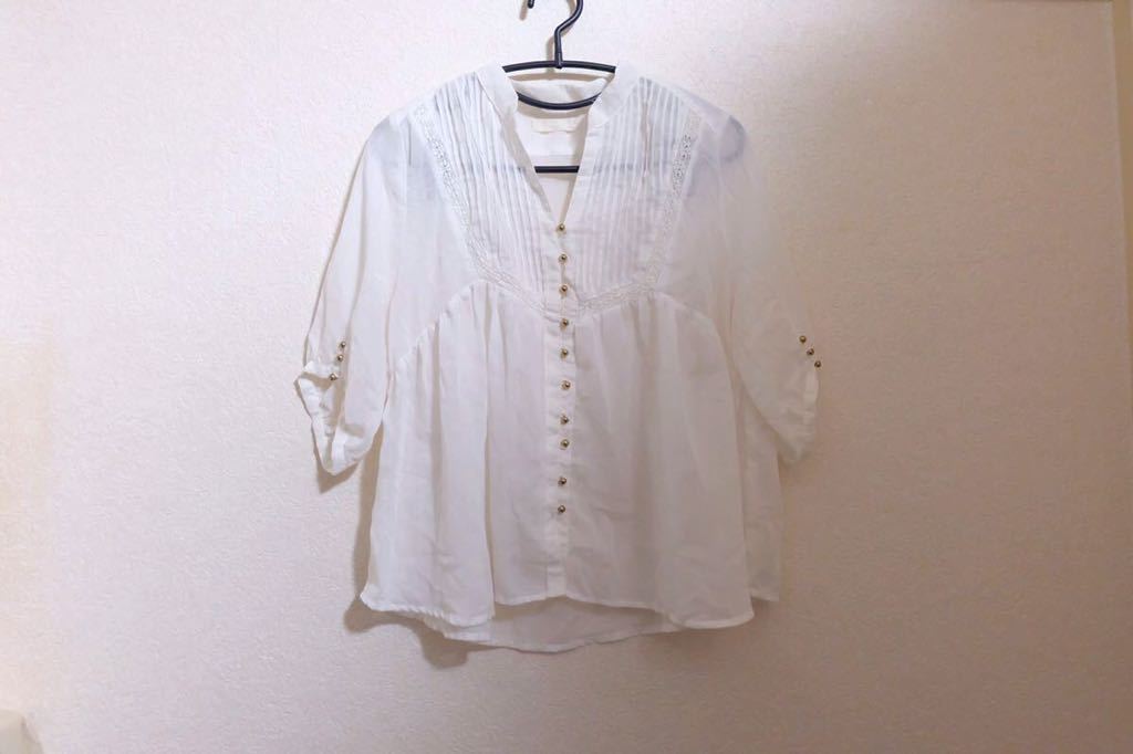 - ふわふわブラウス ホワイト シャツ ゴールドボタン 春夏物