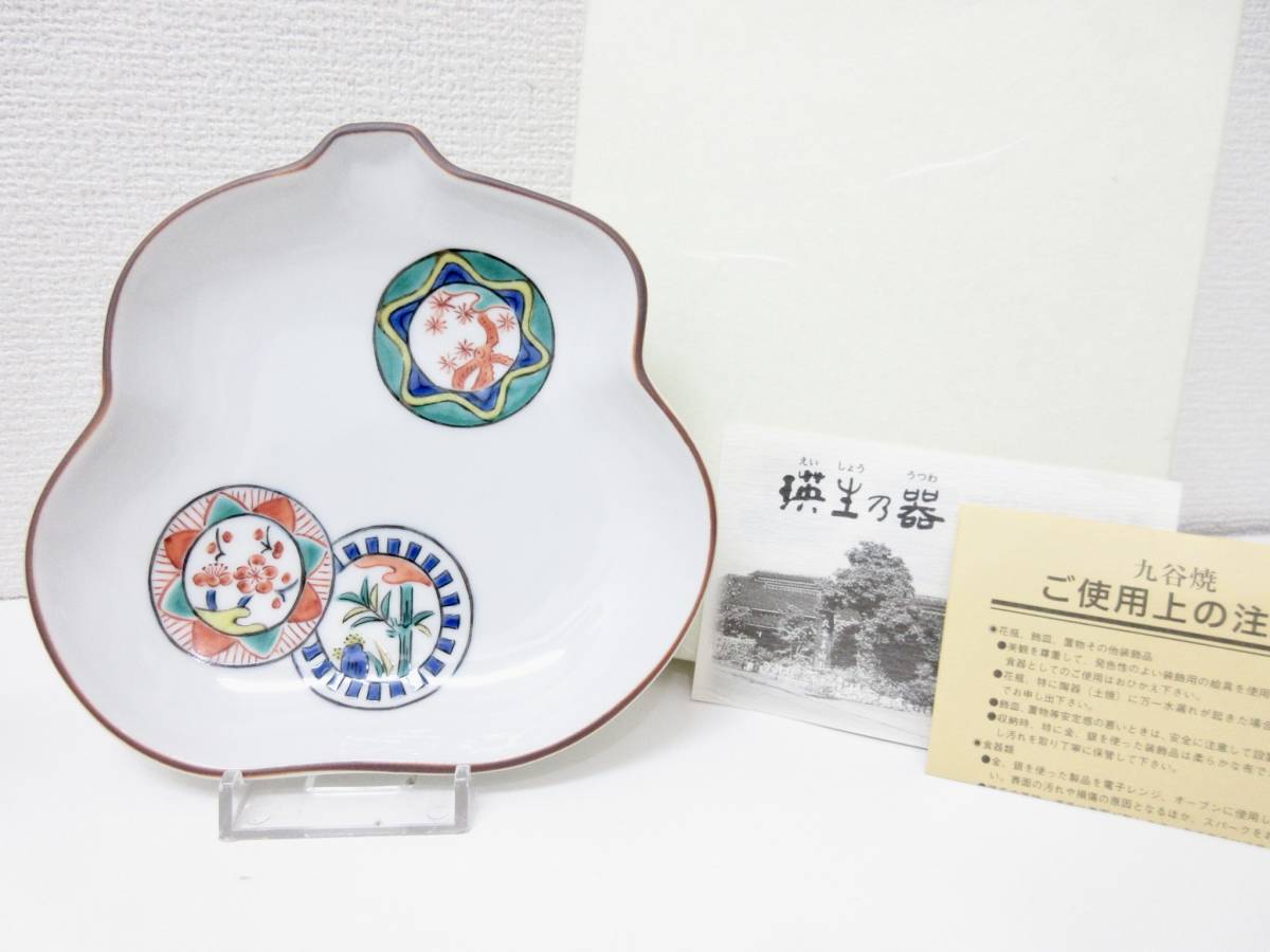 - 未使用品・激レア!!■九谷焼 瑛生の器 ひょうたん型 銘あり 中皿 箱あり 管理2003 P-6