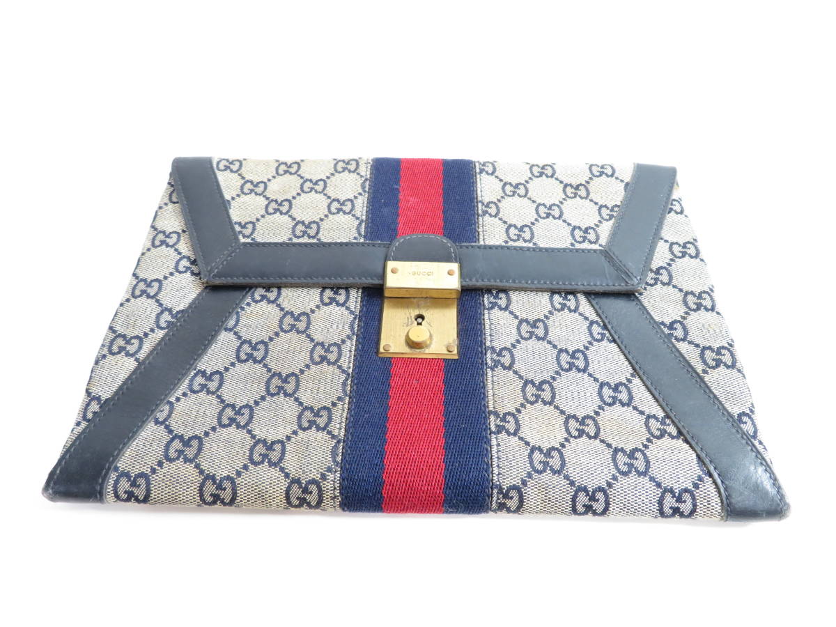 > 並品◆GUCCI グッチ グッチオールド クラッチバッグ ポーチ GG柄 ゴールド金具 ベージュブラウン 管理2003 棚5