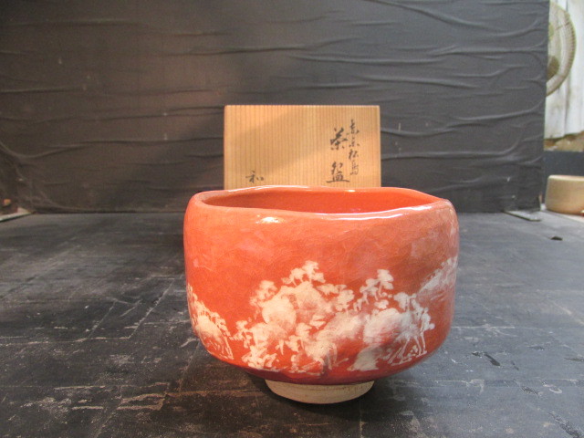 - 和楽造 赤楽 松島 茶碗 抹茶碗 赤茶碗 楽焼 茶道具 共箱