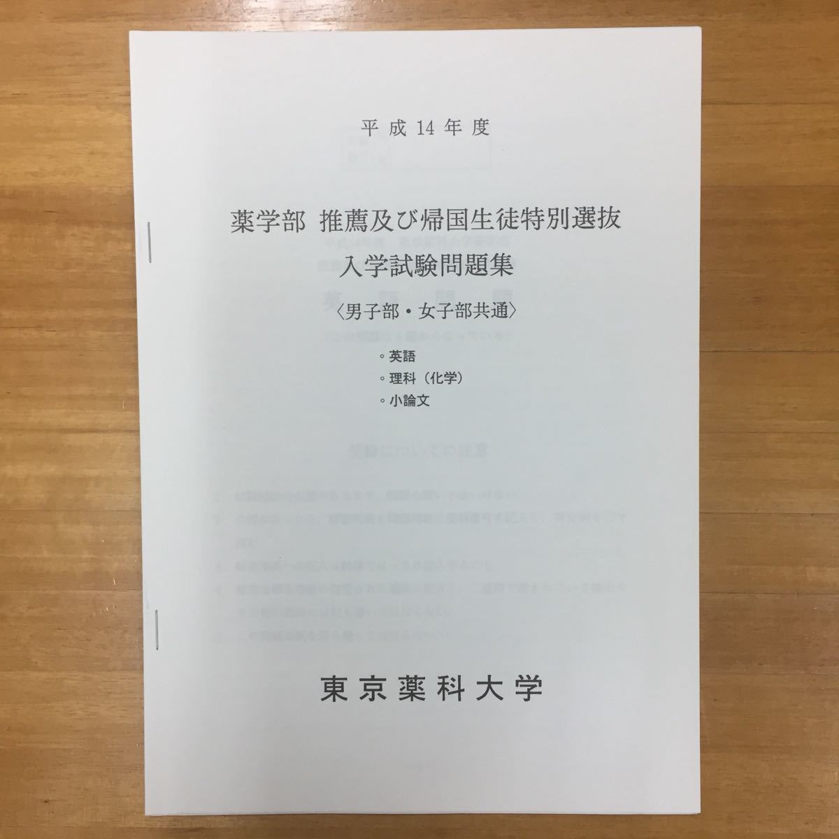 > ■東京薬科大学 薬学部 入学試験問題集 平成14年度 推薦及び帰国生徒特別試験問題集 ※追跡サービスあり