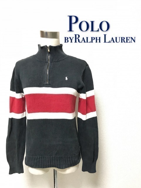 > ★90s★POLO BY RALPH LAUREN★ポロ ラルフローレン★レディース★ハーフジップ★ニットセーター★ニット★size 150★ネイビー★