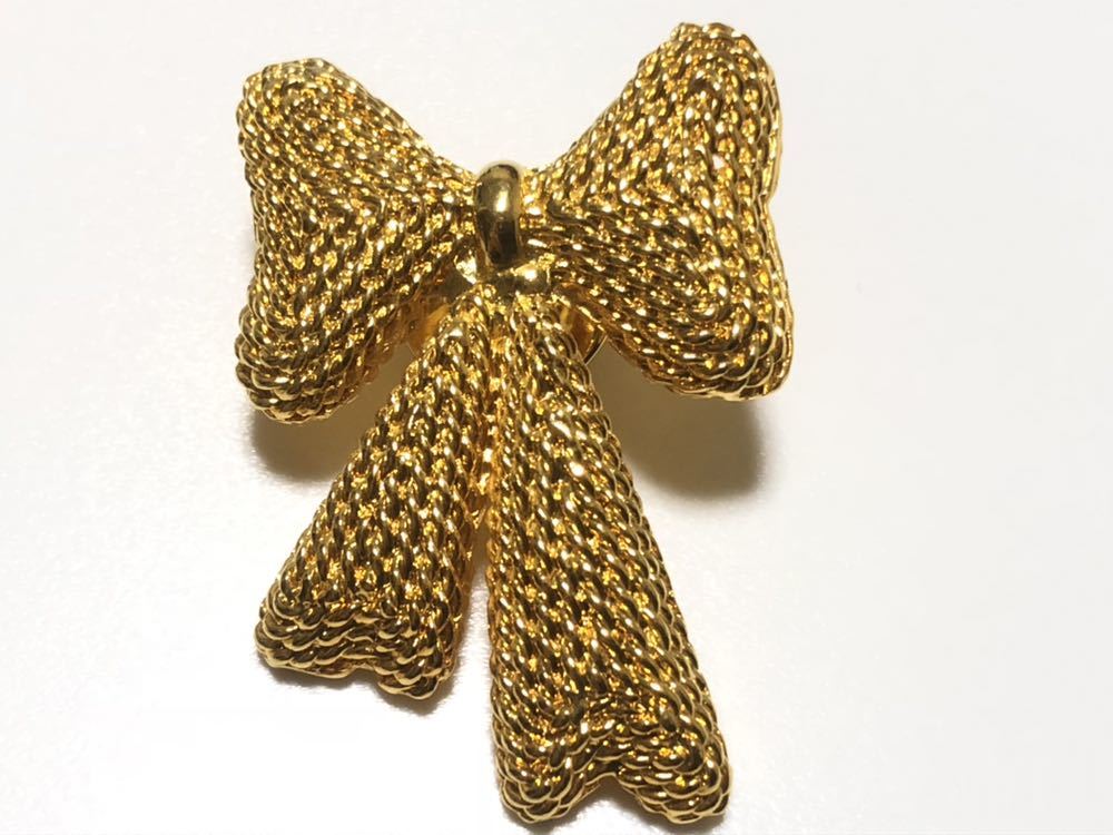 - ゴールドカラー 8.5g 編み込みリボン ピンバッジ 美品【検/りぼん/ピンバッチ】