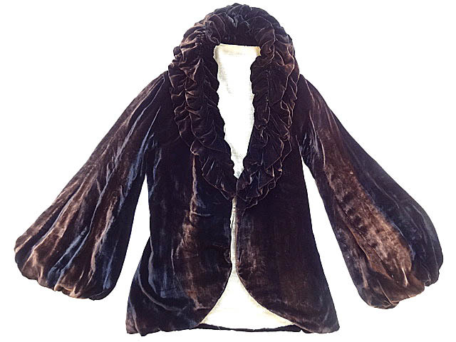 > ビンテージ ヴィクトリアン 1800S ブラック 黒 ベロア ベルベット フリル ショールカラー ベルスリーブ 羽織り ジャケット ガウン レア 珍