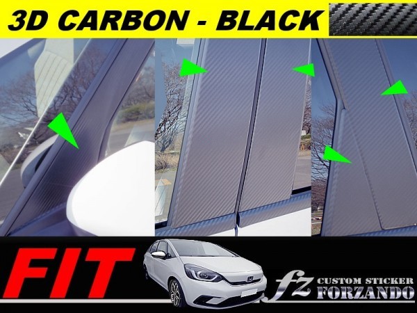 - 新型フィット ピラーカバー 無限バイザー車用 3Dカーボン調 ブラック 車種別カット済みステッカー専門店fz GR3 GR1 GR6 GR5
