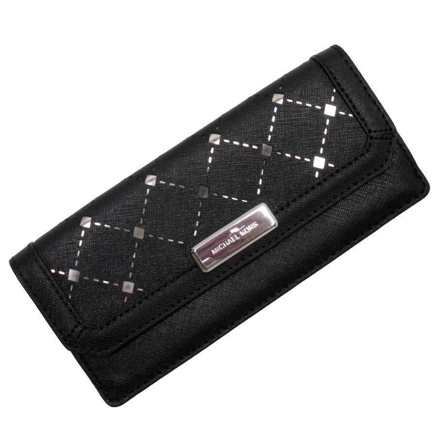- $ 極美品 $ レア!◆ MICHAEL KORS ◆ マイケルコース ◆ シルバー ロゴ 本革 レザー製 ◆ 2つ折り 長財布 ◆ 黒 ブラック系 ◆ 送料無料!
