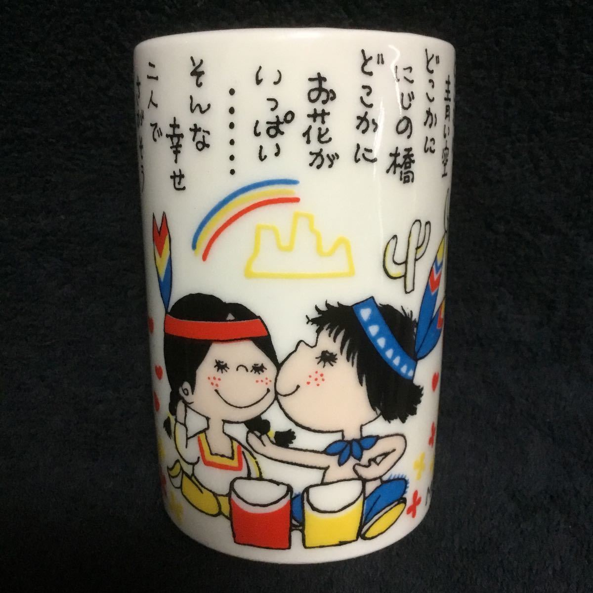 - インディアンカップル柄 湯のみ 昭和レトロ湯飲み