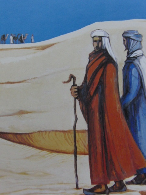 - 神戸文子、【砂漠と人】、希少な大判額装用画集より、美品、日本人画家、新品額装付、送料込み