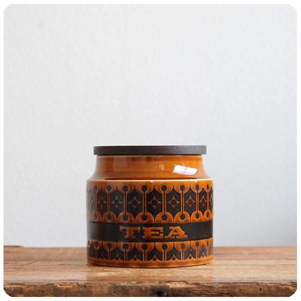 - イギリス ビンテージ ホーンジー ティーキャニスター/TEA/HEIRLOOM/オータムブラウン【英国陶器メーカーHORNSEA】S-128