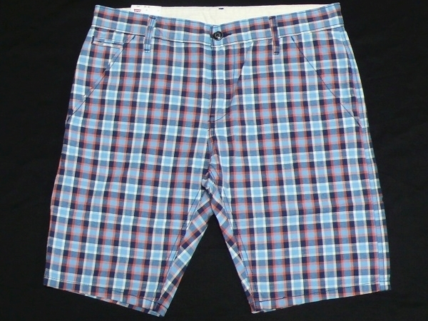 - 新品LEVISリーバイス[541SlimFitCheckShortsスリムチェックショーツ]W32ブルー\5500