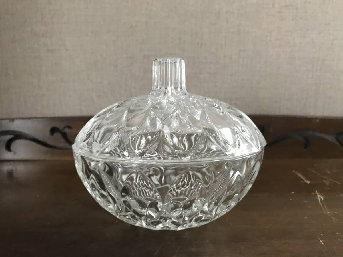 - 昭和レトロ プレスガラス Press glass キャンディボックス Candy box モダン アクセサリー入れ 小物入れ