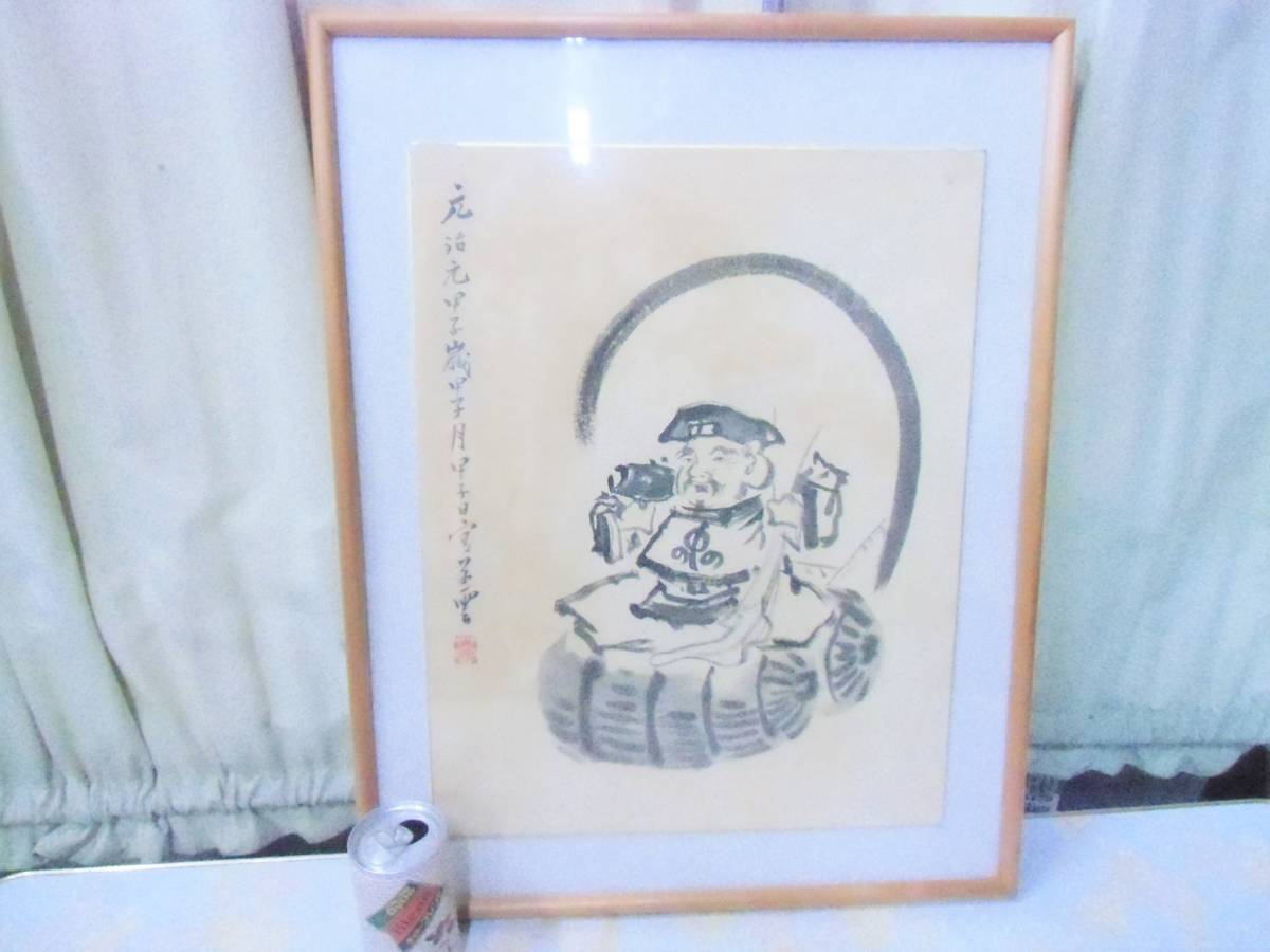 > 改 ▲ モ-699 真作 田崎草雲 大黒 絵 額入り 中古 元治元 甲子歳 甲子月 甲子日 寸法:画寸 縦40cm 横31cm